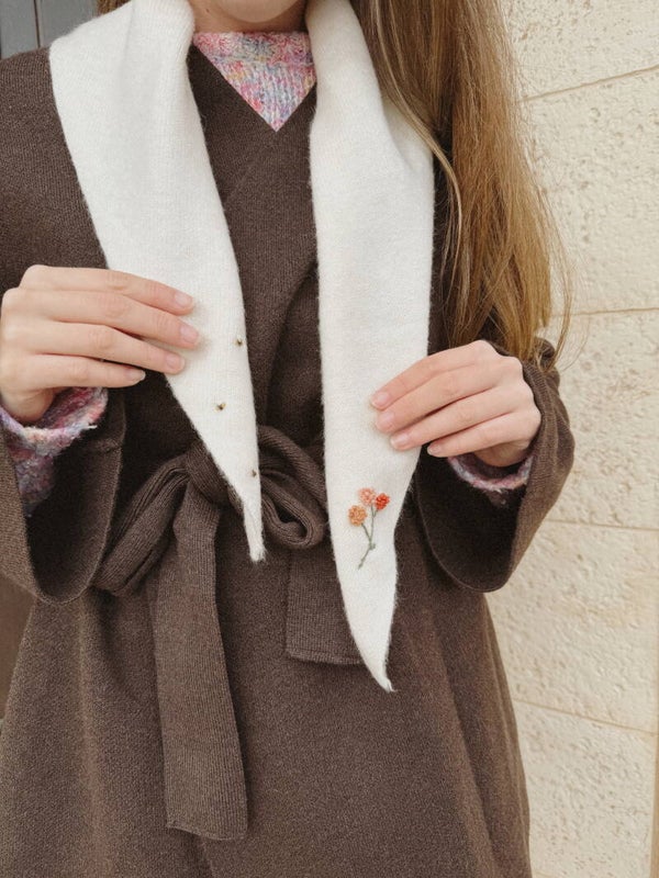 Pañoleta de punto con bordado a mano en hilo de lana orgánica