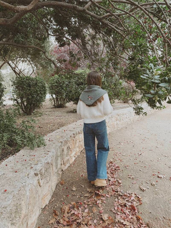 Pañoleta de punto con bordado a mano en hilo de lana orgánica